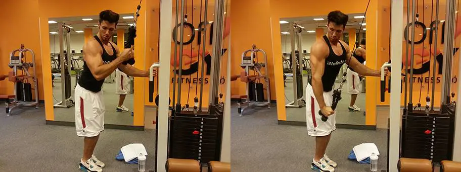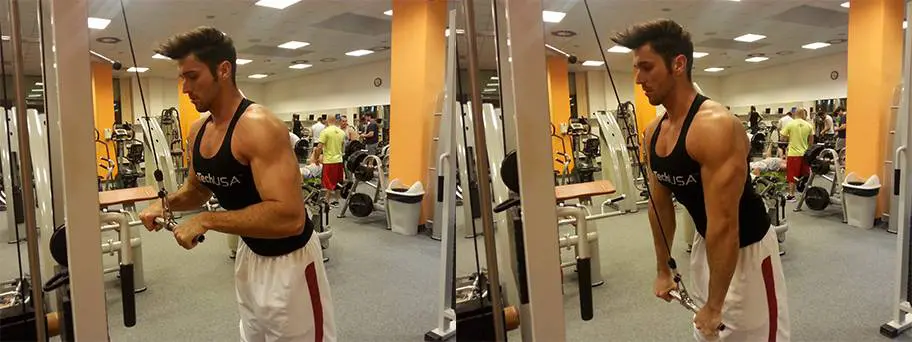 6. Superserie: Extensiones con cuerda / Extensiones con barra en polea (3×8-12)