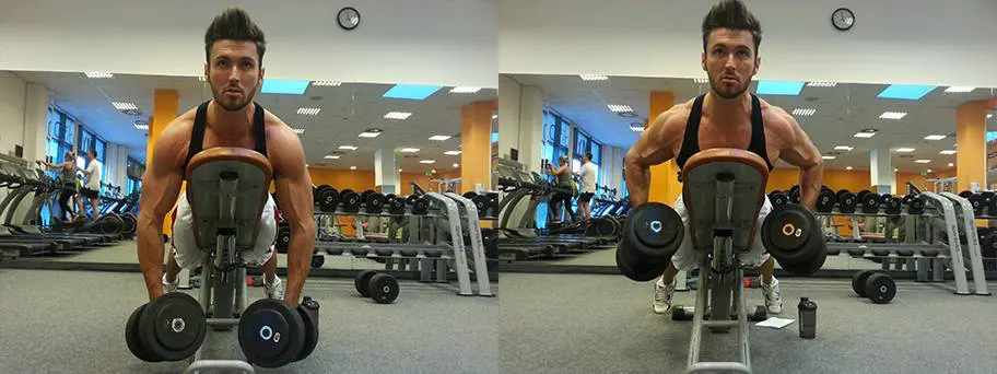 4. Remo mancuernas en banco inclinado (4×8-12)